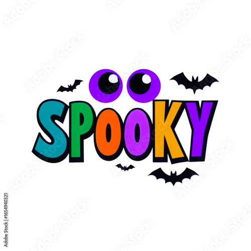 Colorful Spooky Graphic with Googly Eyes and Bats Festive Halloween Design Fun Cartoon Illustration, isolated on a transparent background