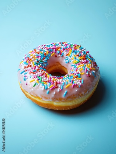 Colorful Sprinkled Donut on Blue Background with Sweet Icing and Delicious Texture for Treat Lovers