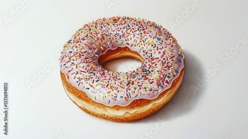 Colorful Sprinkled Donut with Creamy Frosting on White Background Perfect for Sweet Treat and Dessert Themes