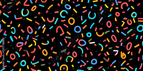 Colorful sprinkles on black background pattern
