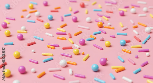 Colorful Sprinkles on Pink Background Celebratory Dessert Topping