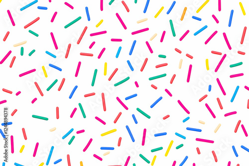 Colorful Sprinkles Scattered Seamlessly on a White Background Creates a Festive Treat Design