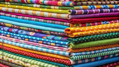 Colorful stack of assorted fabrics, pile, textiles, material, vibrant, textures, sewing, crafting, design, patterns