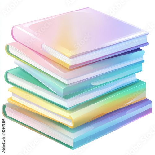 Colorful Stack of Glossy Books with Soft Pastel Covers and Pages