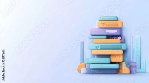 Colorful stack of stylized books creating an inviting library scene, perfect for education and knowledge themes.