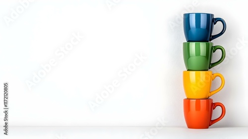 Colorful Stacked Mugs on a Minimalist Background for Home Decor