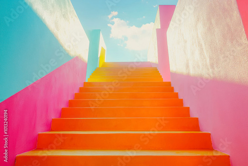 Colorful stairs, stretching into the sky.