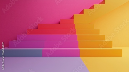 Colorful Stairs with Gradient Design in Pink, Yellow, and Purple Tones Creating a Vibrant and Modern Architectural Space for Creative Projects and Backgrounds