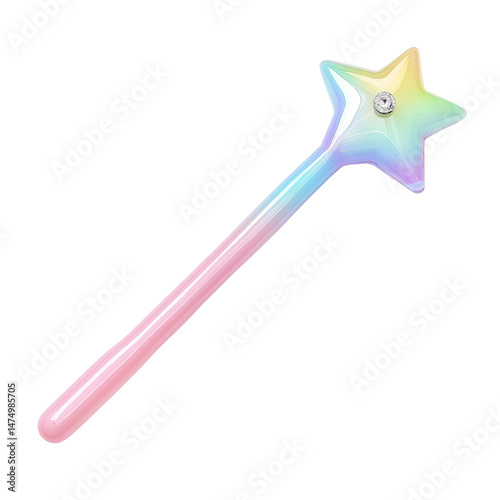 Colorful star-shaped wand with a gemstone. PNG image, transparent background