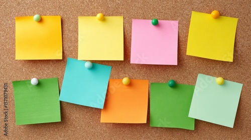 Colorful Sticky Notes Arranged on a Corkboard Creating a Vibrant and Organized Display