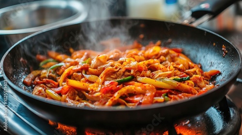 Colorful Stir-Fry in a Hot Pan Over the Stove
