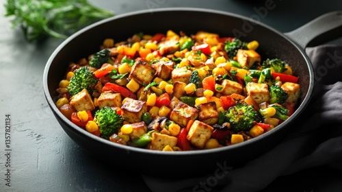 Colorful StirFry with Tofu and Vegetables in a Skillet Healthy Meal Preparation Vegan Food