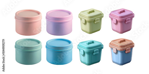 Colorful Storage Containers for Home Organization, PNG collection, set bundle, isolate on transparent or white background