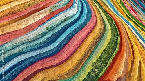 Colorful stripes of vibrant earth tones create a stunning landscape in the Rainbow Hills