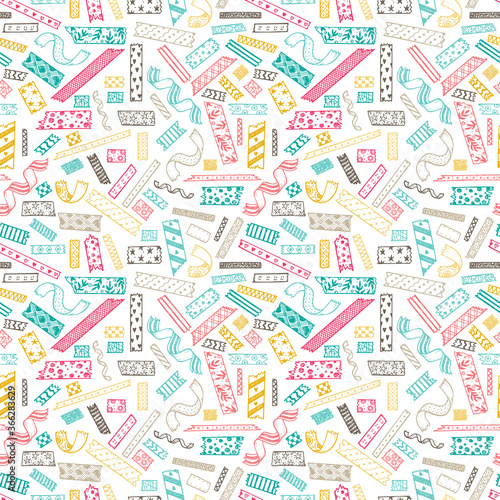 Colorful Strips of decorative Masking Tape Seamless pattern. Hand Drawn Doodle Sticky tape. Adhesive tape. Scrapbook