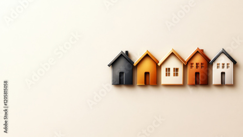Colorful Stylized Houses on Minimalist Background for Real Estate and Home Concepts