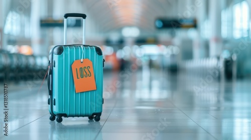 Colorful suitcase on gleaming airport floor, ready for travel adventures