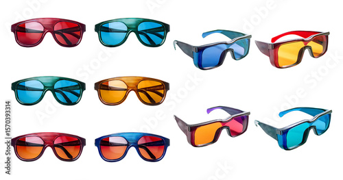 Colorful Sunglasses Collection on White Background for Summer Fun, isolated on transparent background