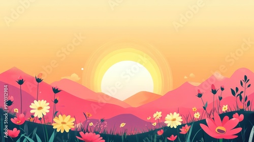 Colorful Sunrise With Morning Dew On Vibrant Spring Flowers And Nature S Beauty