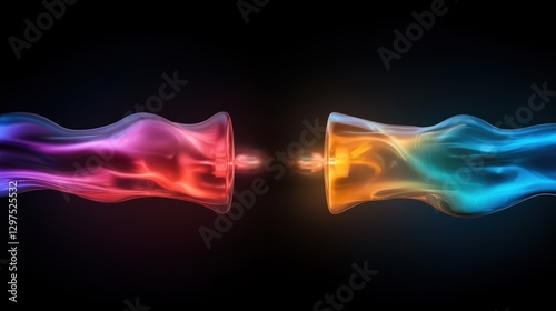 Colorful swirling light waves merging and creating a vibrant glow in a dark background