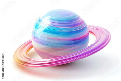 Colorful, swirling planet with vibrant rings, isolated on white background.