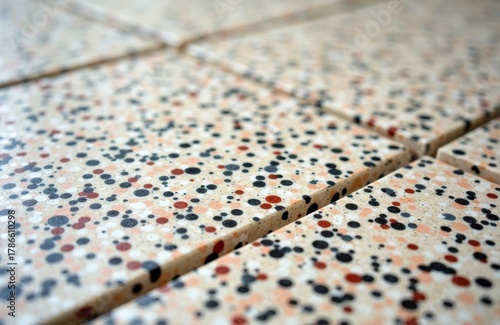 Colorful terrazzo flooring with multicolored speckled pattern and textured surface