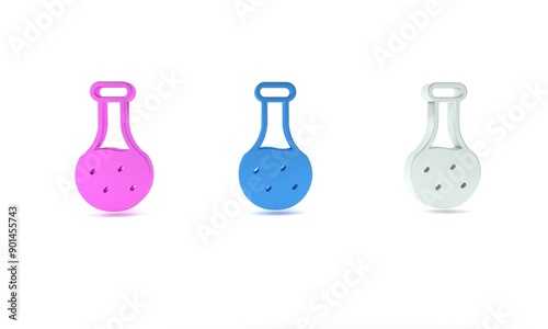 Colorful Test tube and flask chemical laboratory test icon isolated on white background. Laboratory glassware sign. Minimalism concept. 3D render illustration