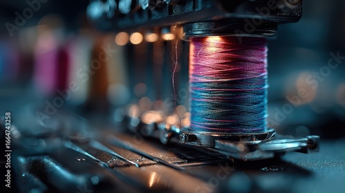 Colorful Thread Spools on Vintage Sewing Machine with Close-Up Focus