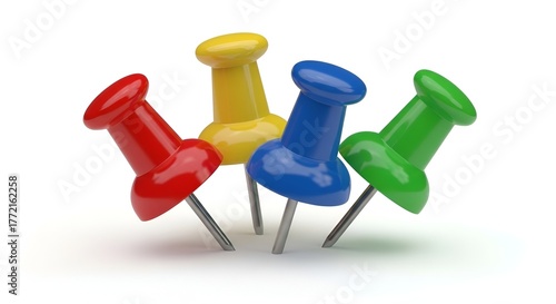 Colorful Thumbtacks on White Background: A Versatile Visual for Office or Project Concepts