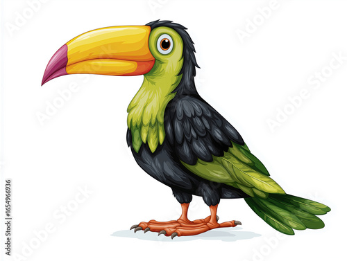 Colorful toucan illustration with vibrant beak and detailed feathers, showcasing the beauty of tropical birds in a playful and engaging style for educational purposes
