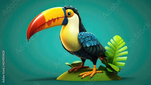 Colorful toucan with its vibrant beak, 3D cartoon style. Generative AI