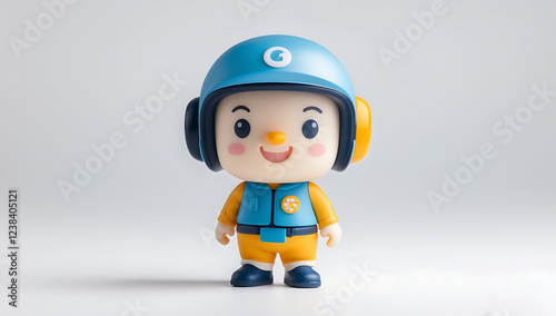 Colorful Toy Figure with Blue Helmet and Yellow Pants: AI-Generated Cute Character