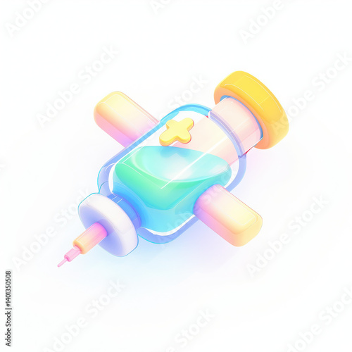 Colorful transparent syringe with vibrant liquid, isolated on white background.