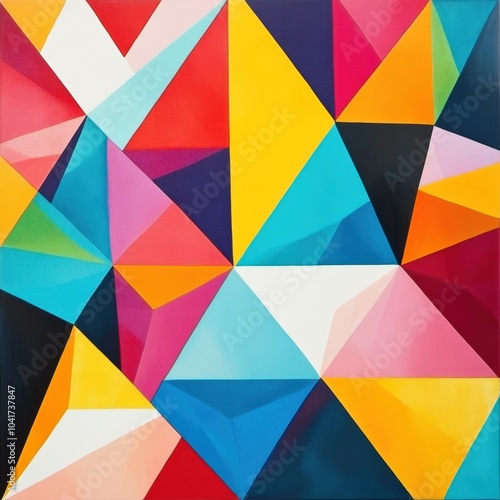 Colorful triangular patterns create an engaging geometric abstraction, showcasing vibrant hues and a dynamic composition. Generative AI