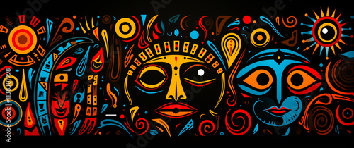 Colorful tribal paintings in living conditions, ancient tribal concepts