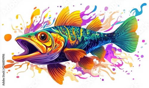 Colorful trout fish illustration with vibrant splashes and artistic design
