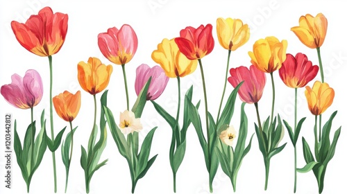 Colorful tulips bloom in a vibrant garden showcasing spring beauty and floral diversity