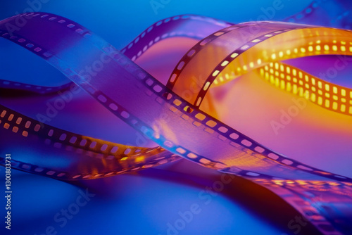 Colorful twisted film strip glowing with vibrant hues, cinematic and nostalgic concept