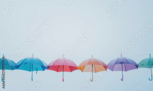Colorful Umbrellas Hanging in the Rain.