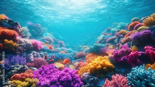 colorful underwater landscape with clay coral reefs imaginative 3d ocean background