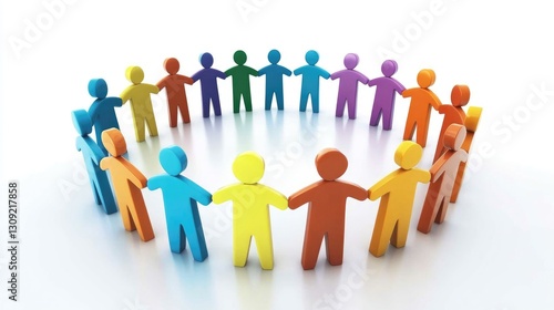 Colorful Unity, Circle of Diverse People Holding Hands, Representing Global Harmony and Teamwork