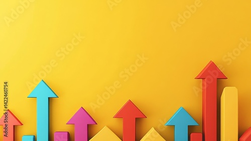 Colorful Upward Arrows and Bars on Yellow, Growth , Success
