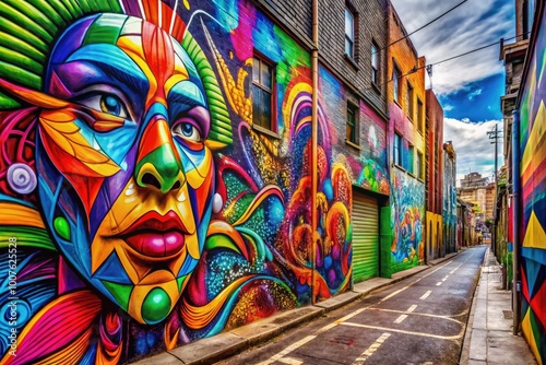 Colorful Urban Graffiti Mural with Abstract Patterns and Designs in a Vibrant Street Art Style