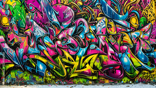 Colorful Urban Graffiti Wall with Abstract Street Art Design