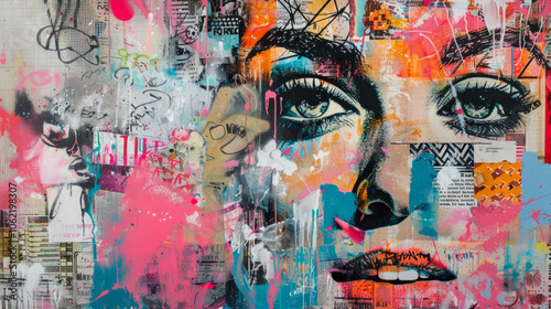 Colorful urban mural depicting a woman's face with vibrant graffiti art