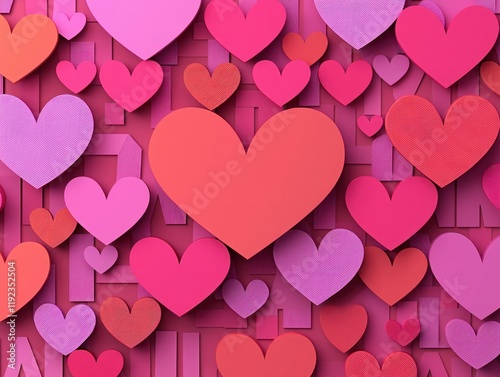 Colorful valentine's day heart decorations romantic atmosphere digital artwork high fidelity close-up view