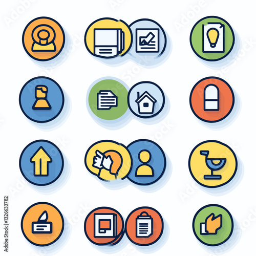 Colorful Vector Icon Set: People, Ideas, Business, Home, Data & Documents.