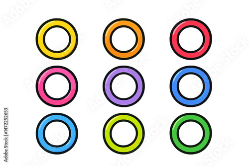 Colorful vector icons of circular shapes arranged in a grid pattern depicting various vibrant colors without any specific context or setting