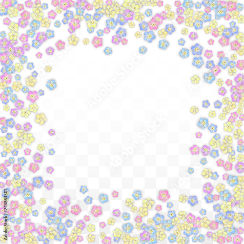 Colorful Vector Realistic Petals Falling on Transparent Background. Spring Romantic Flowers Illustration. Flying Petals. Sakura Spa Design. Blossom Confetti. Design Elements for Wedding Decoration.