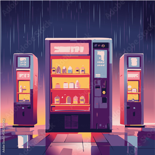 Colorful Vector Vending Machine with Bottled Drinks in Modern Flat Style
